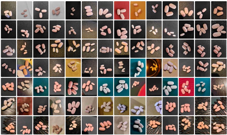 Il collage delle mie pillole chemioterapiche: 224 fotografie, due al giorno per ogni giorno di chemioterapia. Un collage che è anche un calendario, con ricordi agganciati ad alcune foto. I metadati dei file (orario esatto dello scatto) sono stati usati per ricostruire la distanza tra le dosi mattutine e serali. Dodici ore, sempre rispettate.